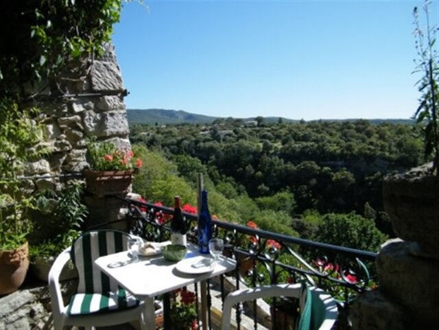 Ein ganz besonderer Platz ist die kleine Terrasse, die oben auf der noch erhaltenen Stadtmauer liegt, und exklusiv für die Gäste der Ferienwohnung reserviert ist. Von hier oben haben Sie einen tollen Blick ins Tal, auf das gegenüber liegende Felsplateau der Monts de Venasque, die Ebene hin nach Carpentras mit den Cevennen im Hintergrund. Hier oben können Sie  wunderschöne Sonnenuntergänge miterleben.